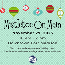 Welcome to Mistletoe on Main, where the holiday spirit comes alive in the heart of historic downtown Fort Madison! Get ready to immerse yourself in a festive atmosphere that celebrates the joy of the season while supporting local businesses. As you stroll through our charming streets adorned with twinkling lights and adorned storefronts, you will feel the magic of the holidays all around you. Take in the sights and sounds of the season as you enjoy horse-drawn wagon rides through our picturesque downtown area. Shop local and discover unique gifts for your loved ones, as our shops and boutiques offer special Christmas sales and delightful samples to tantalize your taste buds. From handcrafted treasures to one-of-a-kind finds, you will uncover something special for everyone on your list. But Mistletoe on Main is not just about shopping, its about creating cherished memories with family and friends. Gather your friends and cozy up with a cup of hot cocoa as you watch the town light up with holiday cheer. Join us as we kick off the holiday season in style at Mistletoe on Main. Whether you are a local resident or visiting from out of town, you are sure to experience the magic of the season in downtown Fort Madison. So come along and make this holiday season one to remember!